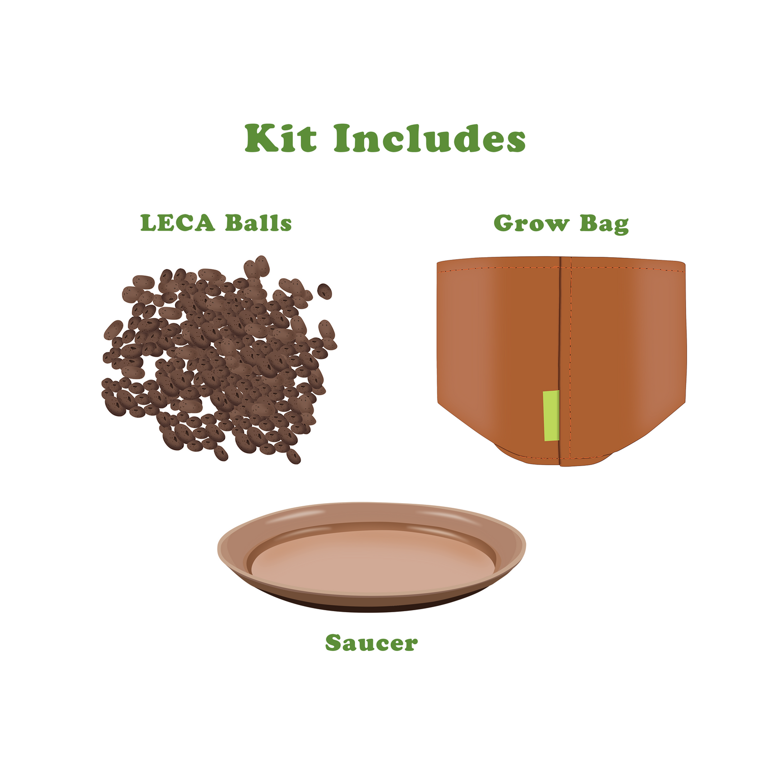 Bagoplant Grow Bag Kits are designed with breathable fabric and a self-regulating watering system. Using LECA balls and bamboo saucer, our kits will make watering easy. You will also say goodbye to root bound plants, and hello to air pruned, healthy root networks!