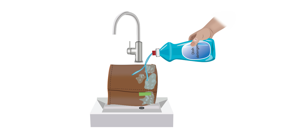 Place the bag upside down in the sink to allow any remaining soapy water to drain.