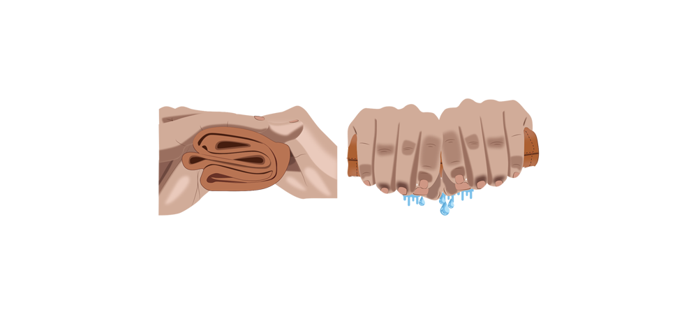 Fold the bag and gently squeeze it to remove water. Do not twist.
