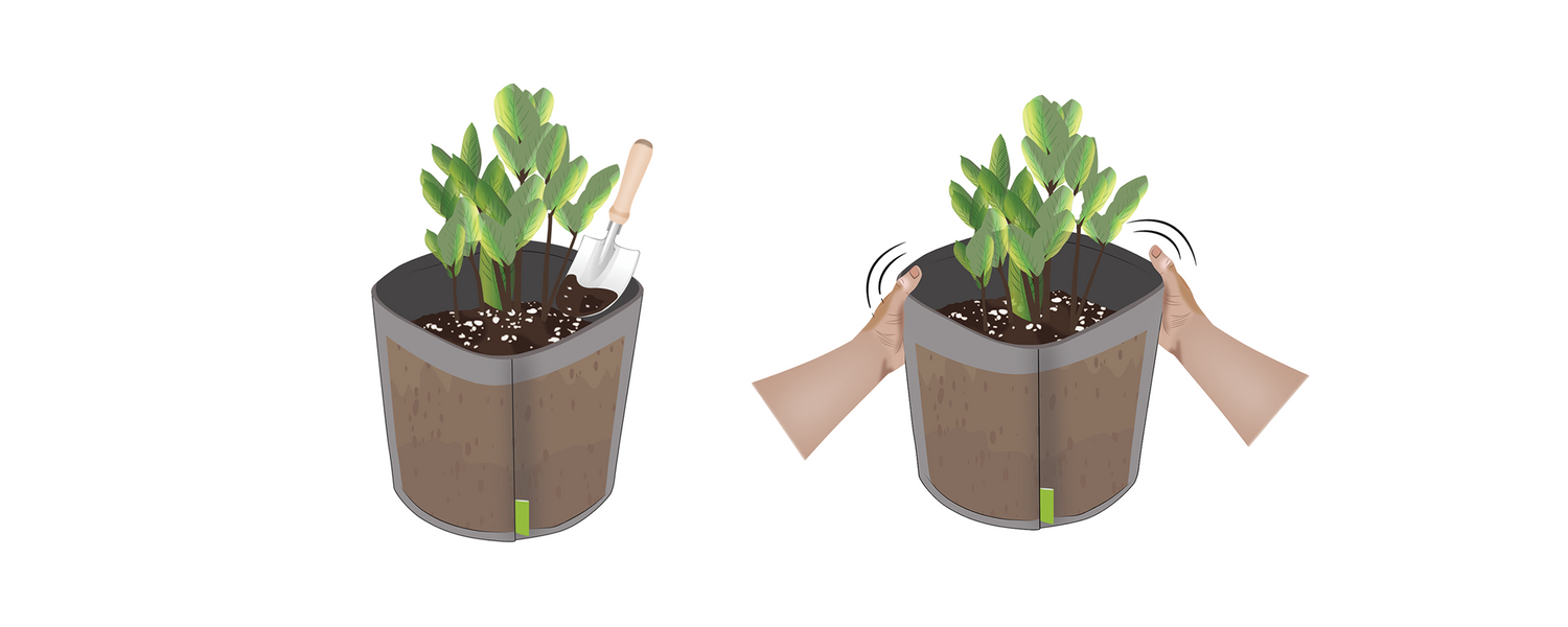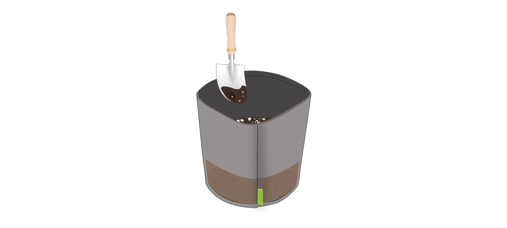 Fill up the rest of the grow back with soil leaving about 5/6 of space from the lip. Gently tap and shake the bag to help the soil settle evenly.