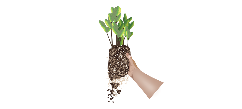 When repotting a plant, gently massage the root ball to loosen the soil.